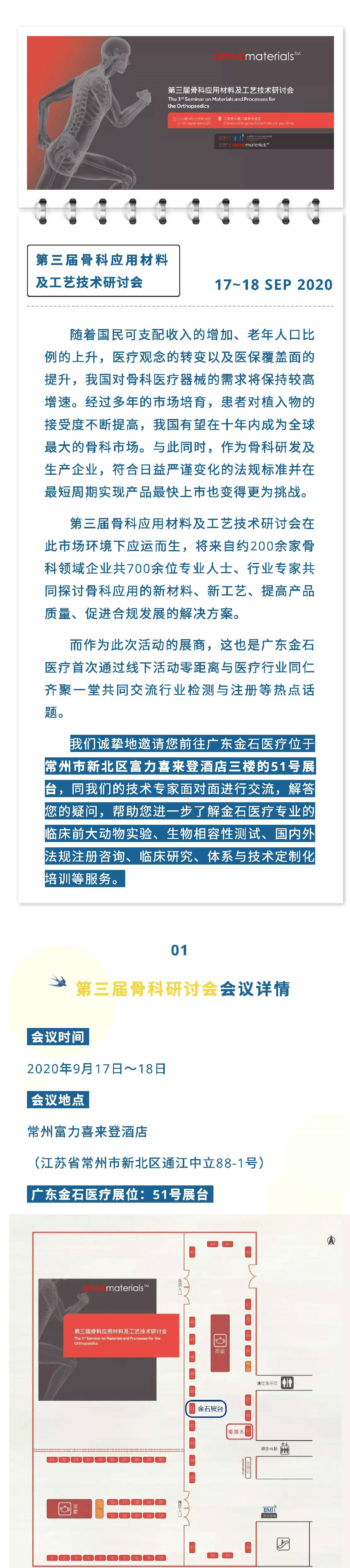 【邀请函】广东金石医疗邀请您参加第三届骨科应用材料及工艺技术研讨会